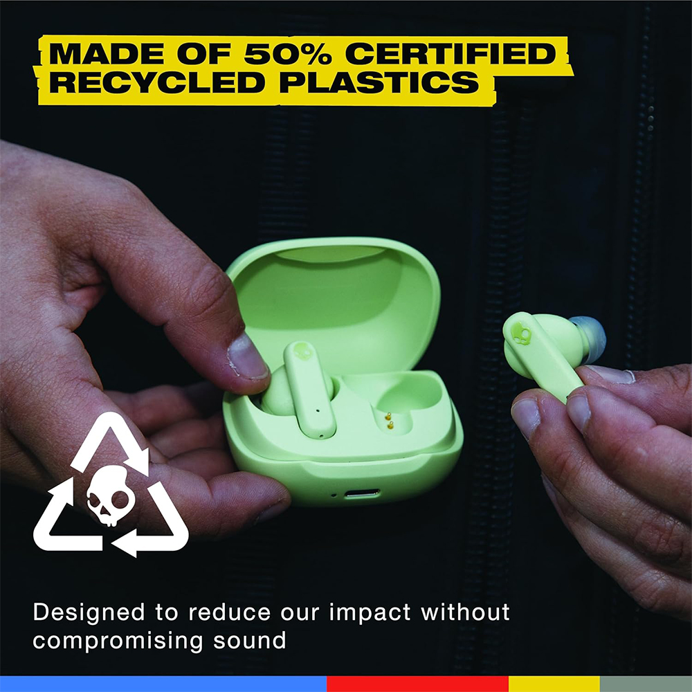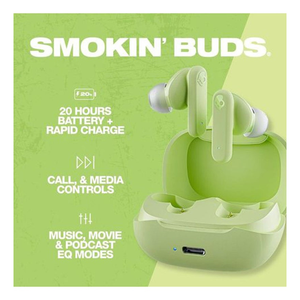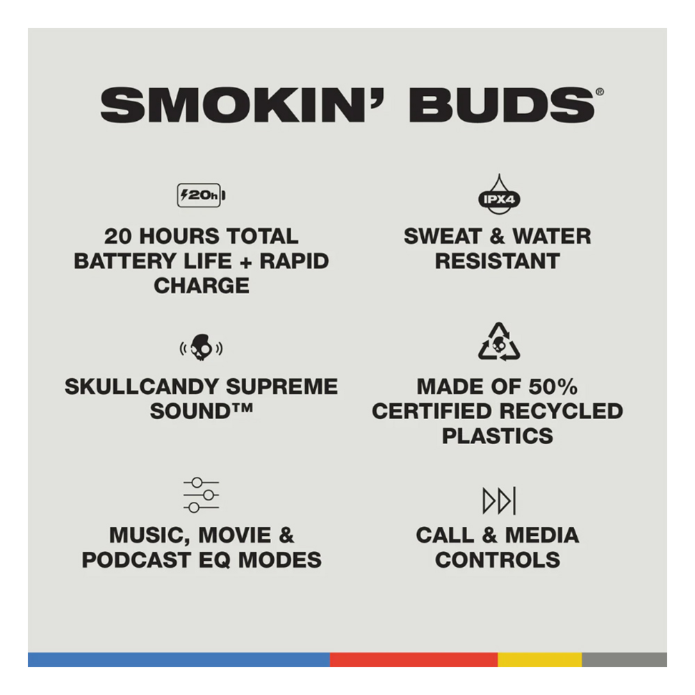 Skullcandy Smokin‘ Buds Wireless In-Ear Headphones | 20 Hours of Autonomy + Rapid Charge | 50% Renewable Plastics | Microphone | Compatible with iPhone Android and Bluetooth Devices | ENC Clear Calls | Music/Movie/Podcast EQ Modes | Touch Controls | Solo Bud Use | IPX4 Water Resistant |
