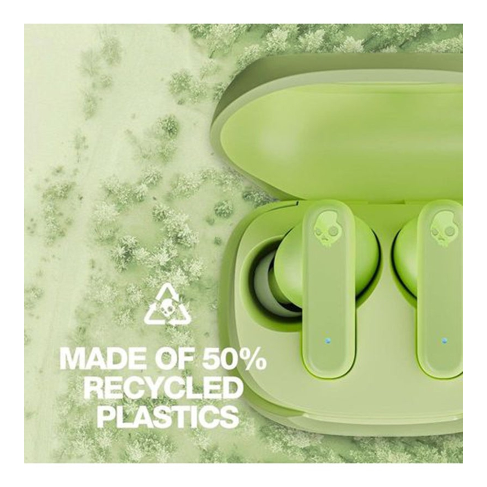 • 50% Renewable Plastic – Buds are made with up to 50 percent renewable plastics and every Skullcandy product uses 100 percent recyclable packaging. Renewable plastics are made from biobased or biodegradable materials and can be reused or recycled