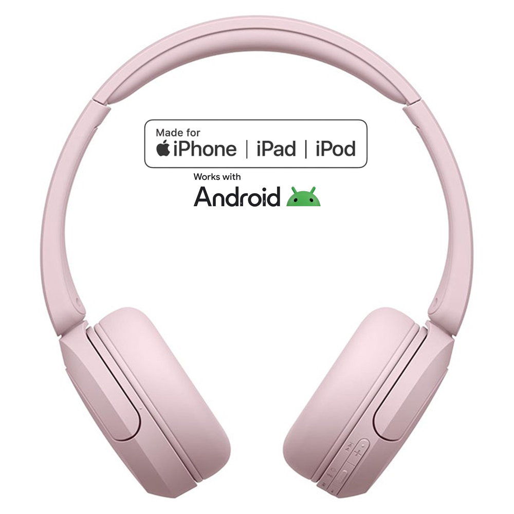 Sony WH-CH520 Wireless Bluetooth Headphones โ€“ up to 50 Hours Battery Life with Quick Charge, On-ear style โ€“ Pink