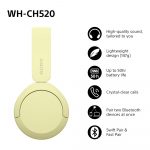Sony WH-CH520 Wireless Bluetooth Headphones โ up to 50 Hours Battery Life with Quick Charge, On-ear style โ Yellow