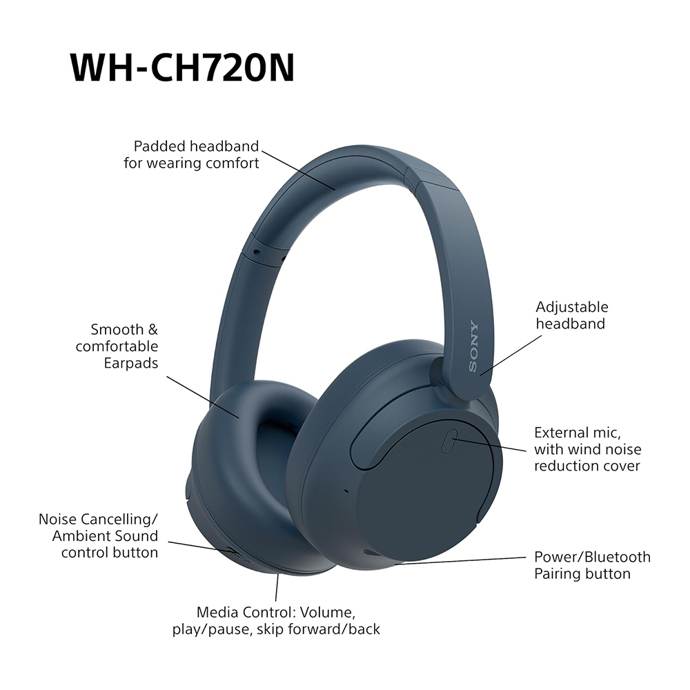 Sony WH-CH720N Wireless Bluetooth Noise Cancelling Over-Ear Headphones with Built-in Microphone | Ambient Sound Mode | Adaptive Sound Control | Lightweight Design | up to 35 Hours Battery Life and Quick Charge | Works With iOS & Android | Customized EQ | Multi-point Connection | Clearer hands-free calling|