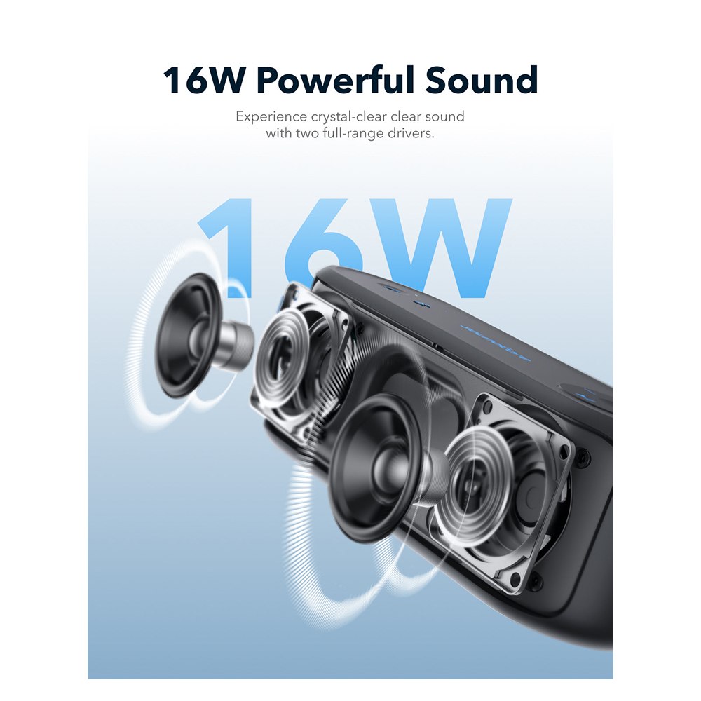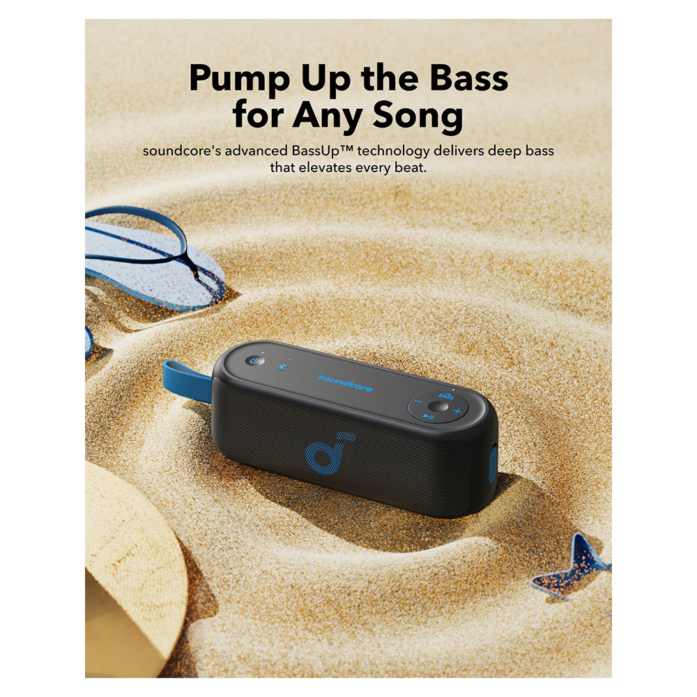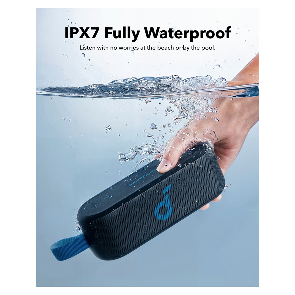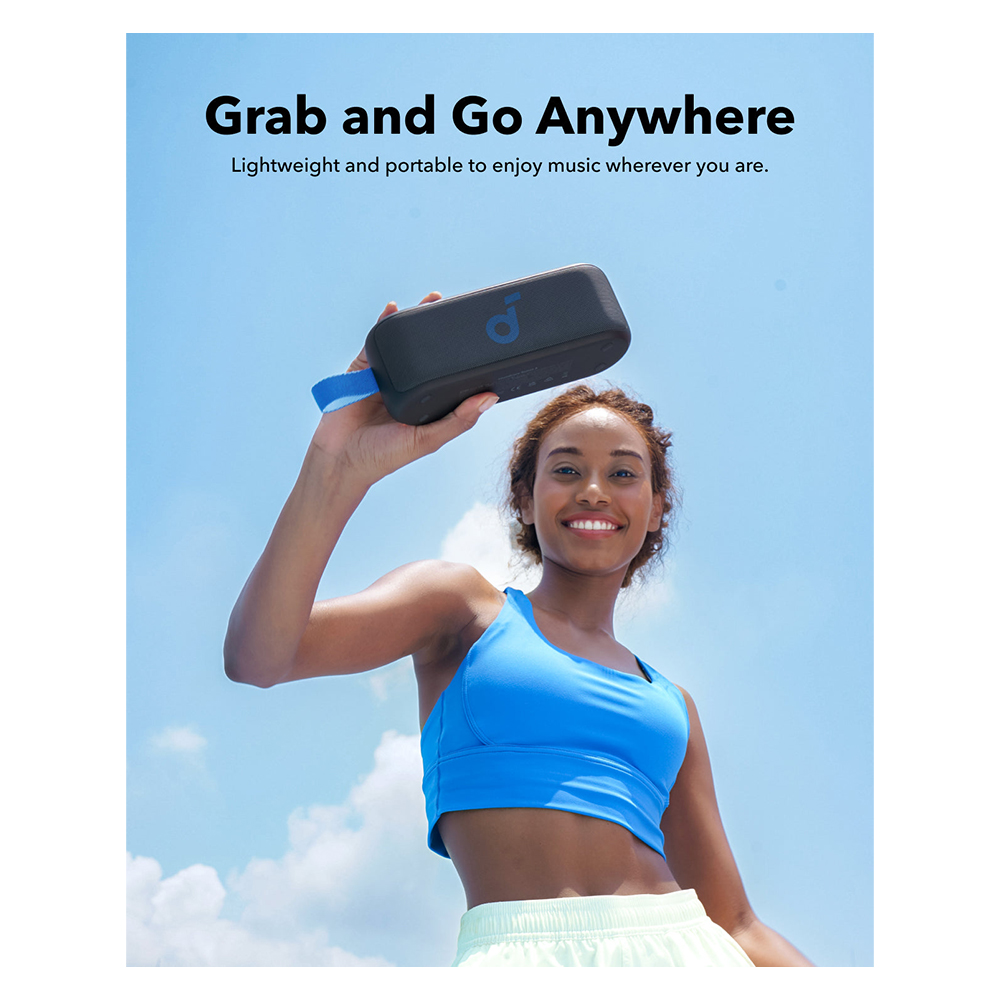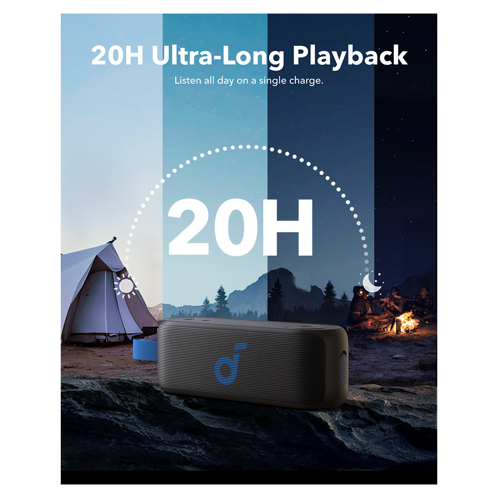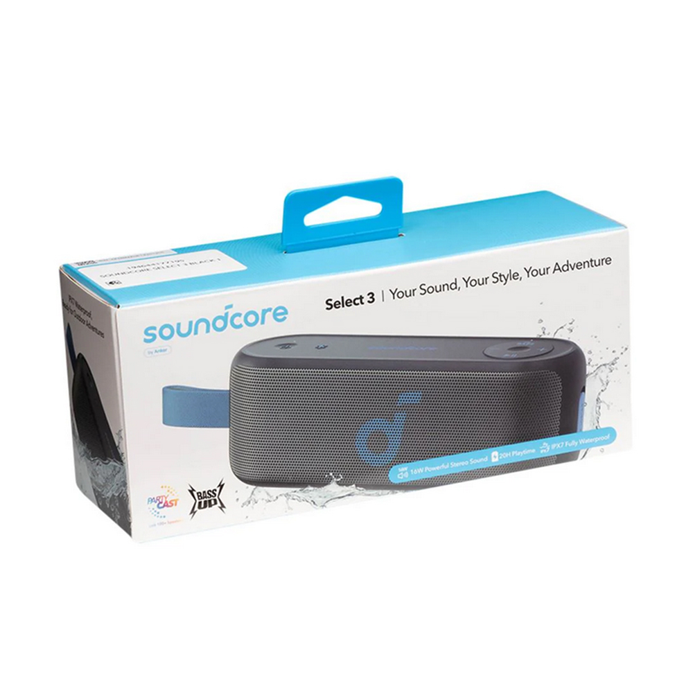 The soundcore Select 3 Bluetooth Speaker is designed to enhance your music experience with 16W stereo sound and dual full-range drivers, delivering crisp clarity. With soundcore’s BassUp™ technology, you’ll enjoy powerful bass that adds depth to your favorite tracks. A single charge provides up to 20 hours of playtime, making it perfect for all-day and all-night listening. Additionally, its IPX7 waterproof rating lets you relax and enjoy your music by the pool, at the beach, or during any outdoor adventure without worry.