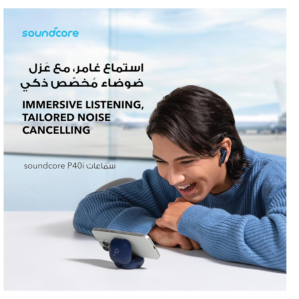 • [Superior Call Quality]: soundcore P40i noise cancelling earbuds enhanced by 6 mics and an AI algorithm allow you to enjoy clear communication. Whether on a call or via video chat, your voice is transmitted with clarity and strength.