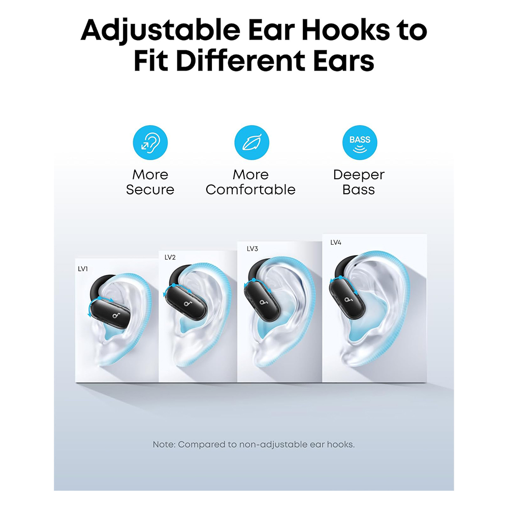 Soundcore V40i by Anker With Sport X10 | Open-Ear Headphones | Crystal Clear Design | Lidless Case | 4 Adjustable Positions for Every Ear Size | Richer Bass | IP55 | 21-Hour Playtime | AI Boosted Clear Calls | Bluetooth 5.4 | App Control | Comfort Fit | Powerful Sound |