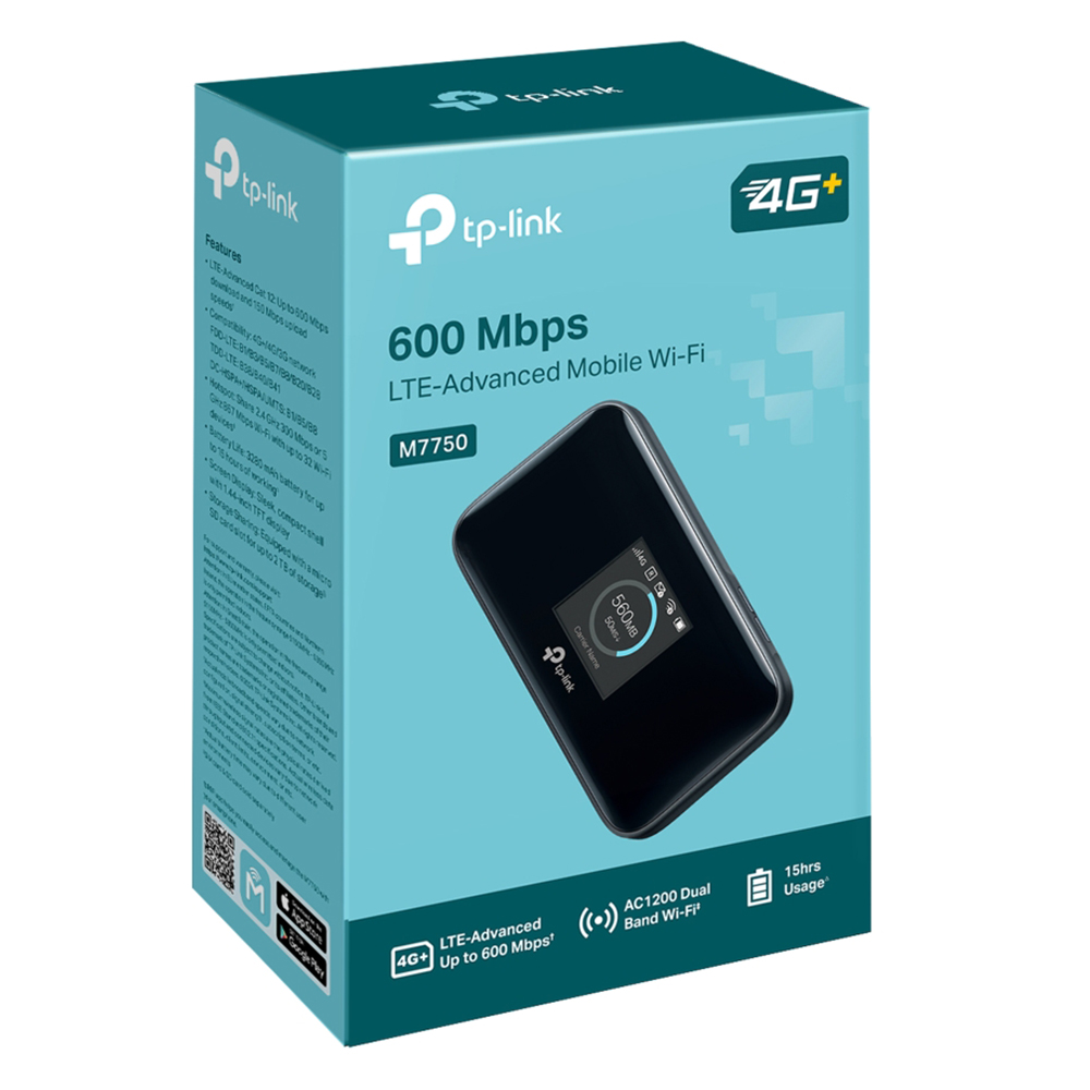 TP-Link M7750 600 Mbps LTE-Advanced Mobile Wi-Fi | TP-Link M7750 4G+ Cat12 LTE Router with Sim Slot | Dual Band Mobile Wi-Fi Router | 600Mbps Portable Wi-Fi | Plug and Play Mi-Fi | Screen Display | Long Battery Life | Micro SD card Storage | APP Control | Compact design|