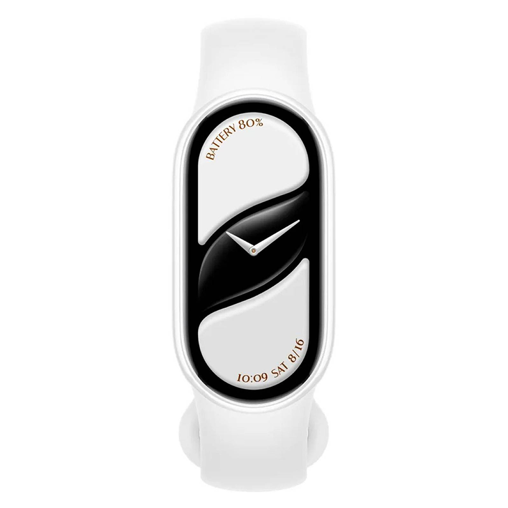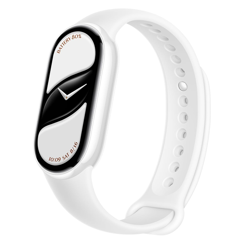 Xiaomi Smart Band introduces a sleek ceramic frame, complemented by a matching ceramic clasp and a white fluoro rubber strap that exudes refined, tactile elegance.