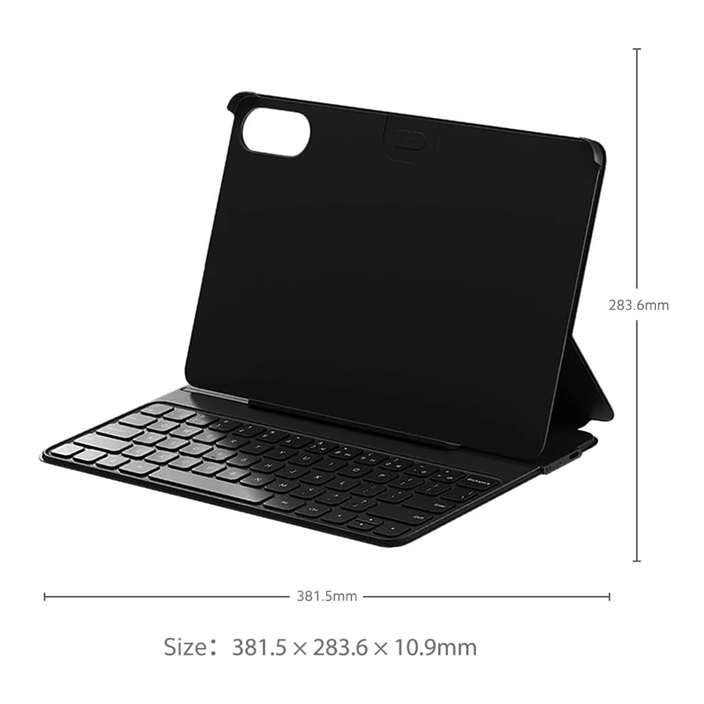 The sleek and luxurious Black PU material with a sophisticated textured design is minimalist, elegant and skin-friendly. The keyboard is durable and resistant to dirt, designed to resist fingerprints and oil stains. It is also equipped with a detachable pen holder at the top for easy storage. Compatible models Redmi Pad Pro Dimensions:385.1ร283.6ร10.9 mm(unfolded) Weight:450ยฑ10g Keys quantity:64 keys, Key travel:1.3mm Connection method: Bluetooth 5.2 Language: English