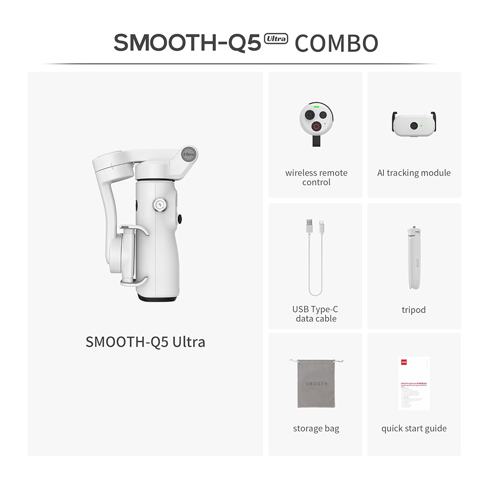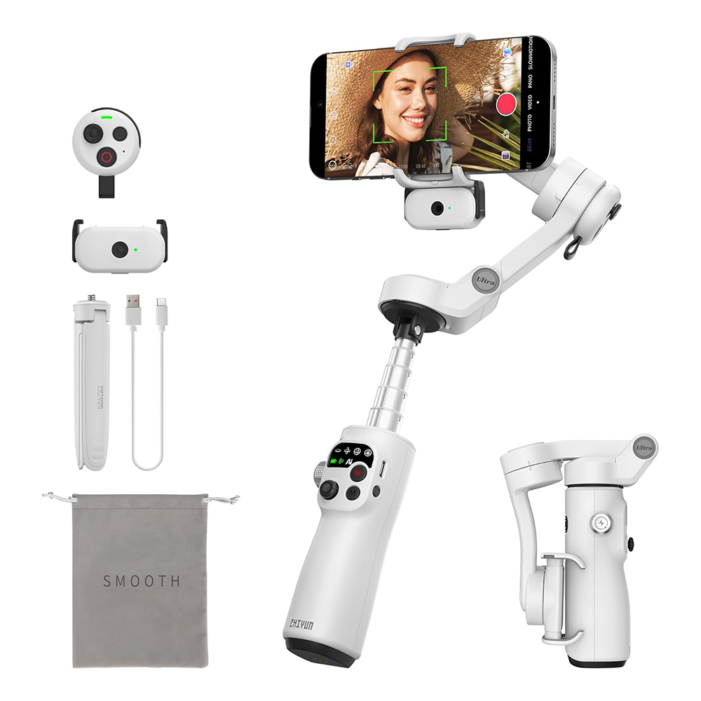 Zhiyun Smooth 5 Combo Ultra Gimbal Stabilizer | 3-Axis Handheld Smartphone Gimbal with Grip | Tripod For Vlog LED Fill Light | iPhone, Android, FiLMiC Pro | Detachable Voice Remote Control | AI Tracker | Built-in Extension Rod|